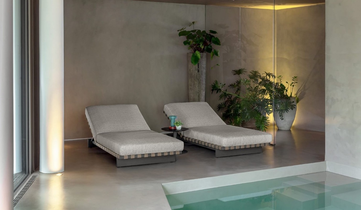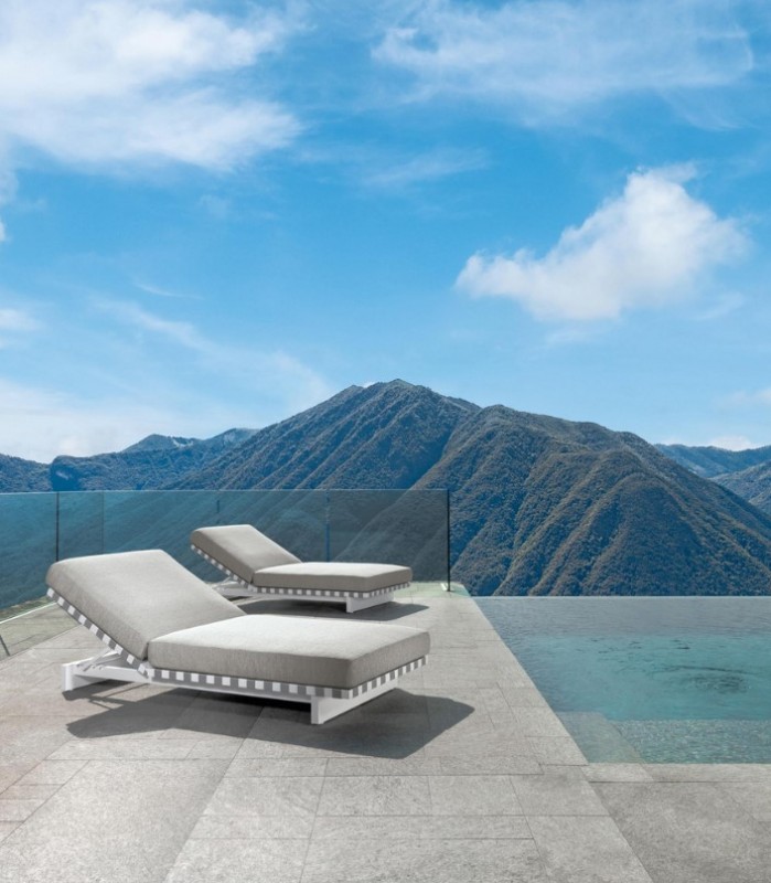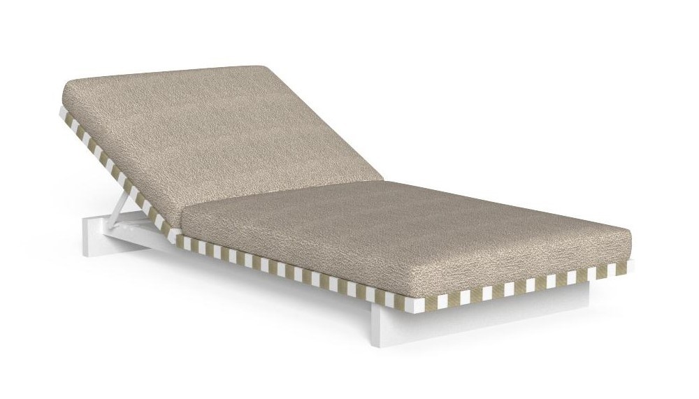 Il Lettino ARGO ALU si caratterizza per una cuscinatura imbottita e confortevole, una solida struttura in alluminio rivestita da cinghie elastiche in linea con gli altri elementi della collezione.