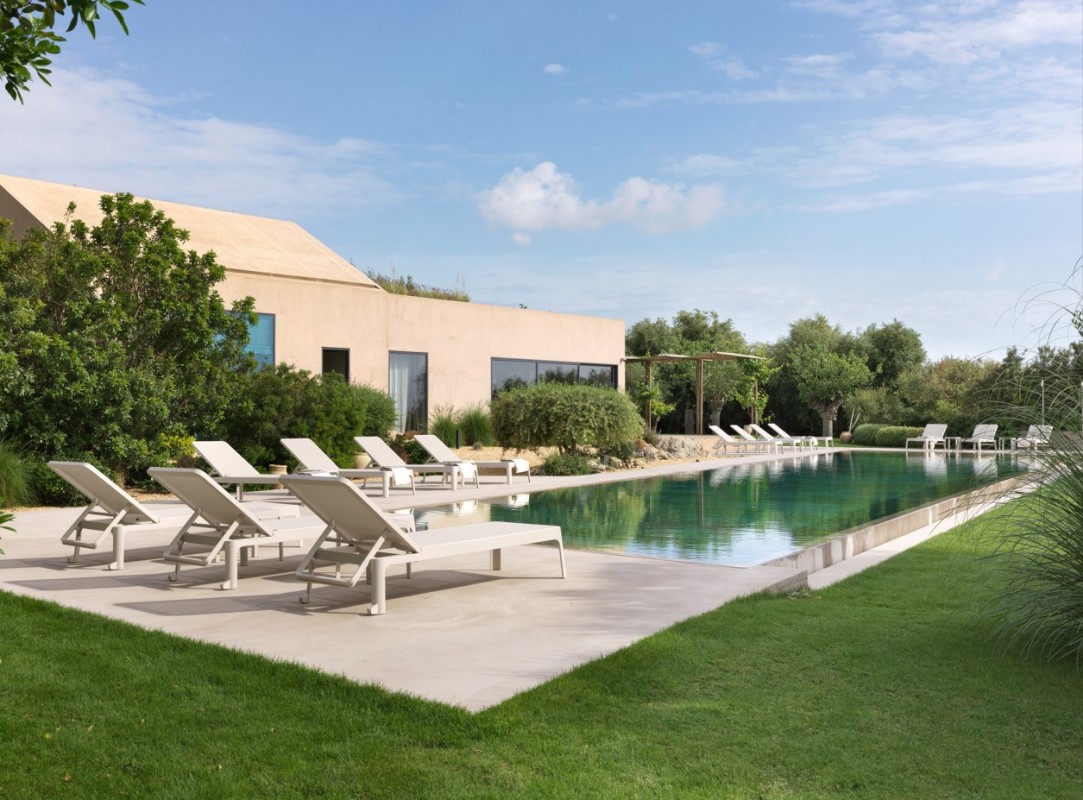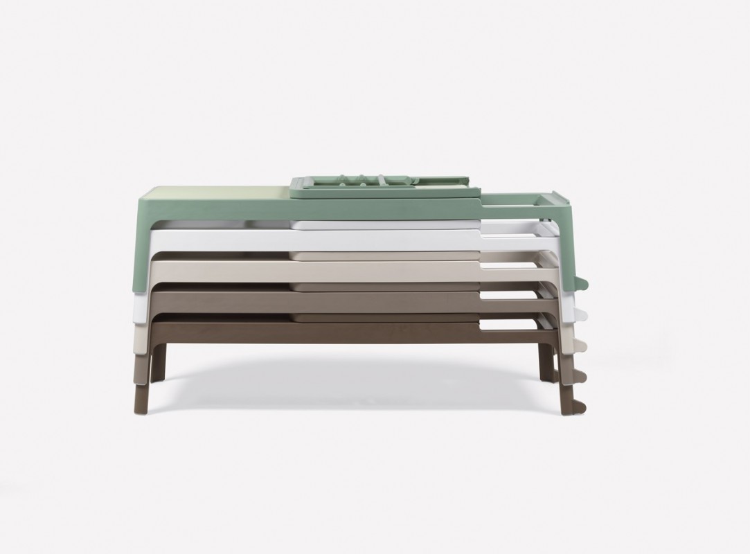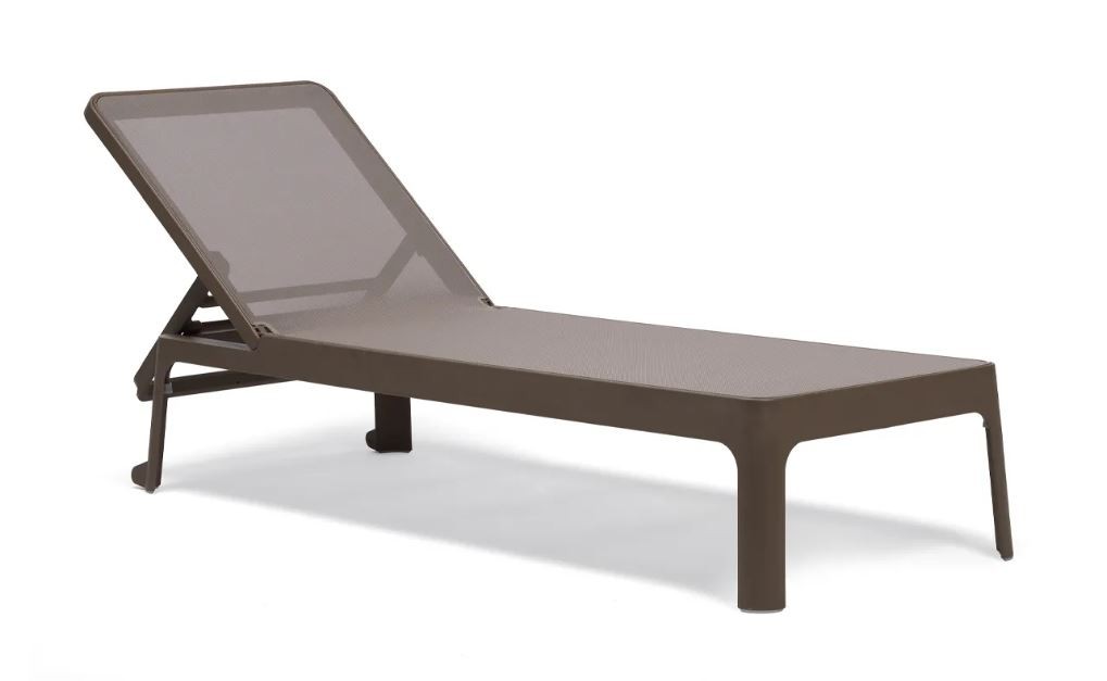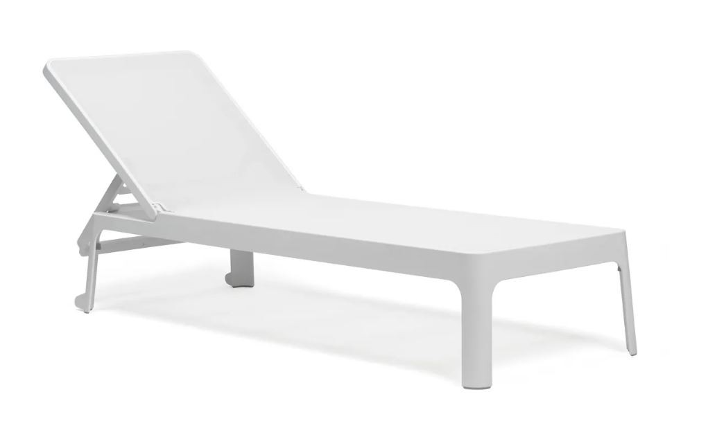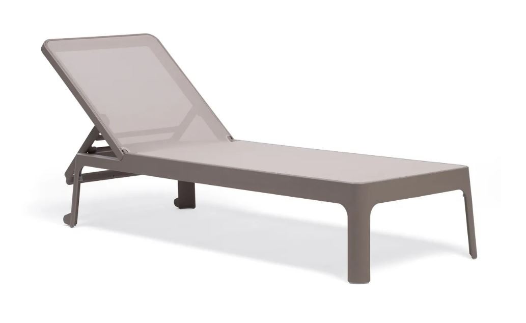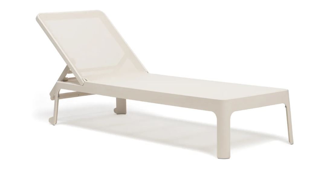 Lettino Prendisole PLANO, in polipropilene fiberglass e tessuto sintetico con ampia seduta planare e schienale reclinabile in 04 posizioni.