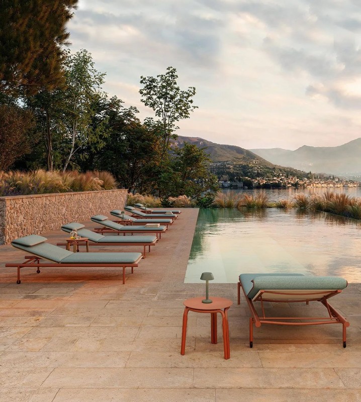 Lettino prendisole in alluminio verniciato Terracotta, Grafite, Salvia o Sabbia.