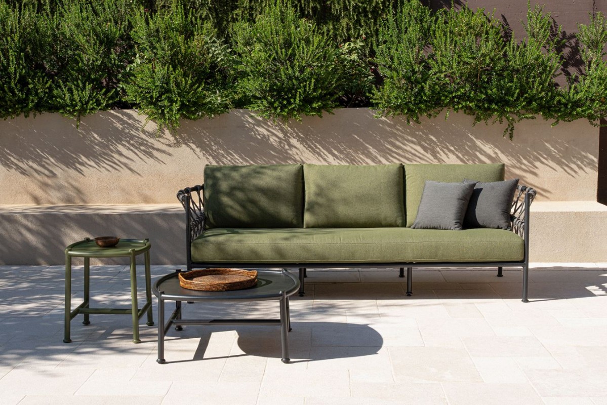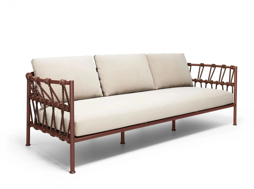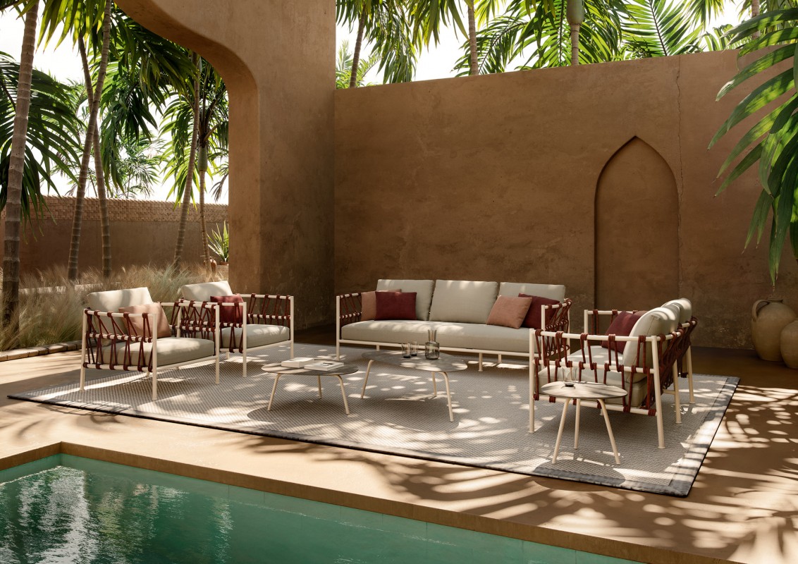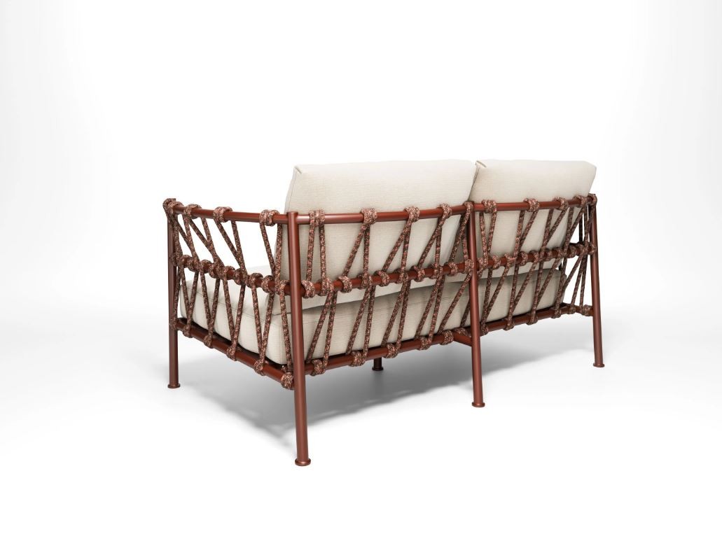 Una collezione estremamente versatile, grazie alla varietà di combinazioni colori, che spaziano dalle tonalità più sobrie a quelle più audaci, e alla sua multi-materialità: la struttura in alluminio viene avvolta da una corda intrecciata e leggera reinterpretata in chiave moderna, un elemento funzionale che arricchisce l’estetica senza nasconderne l’anima metallica.