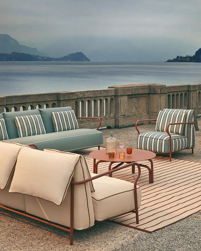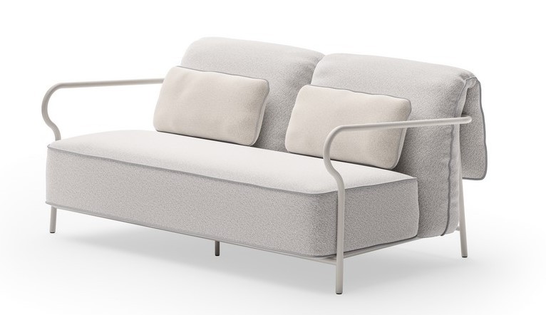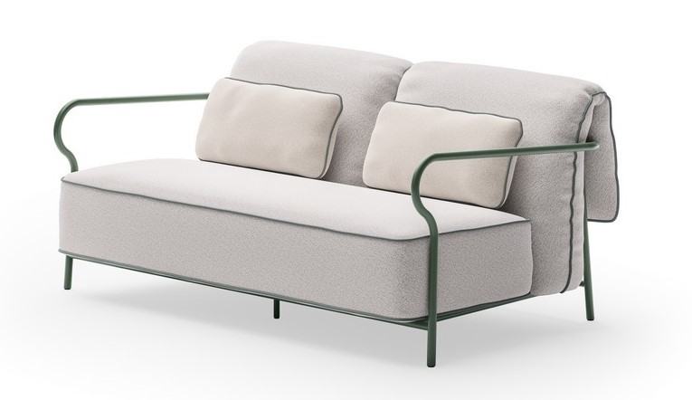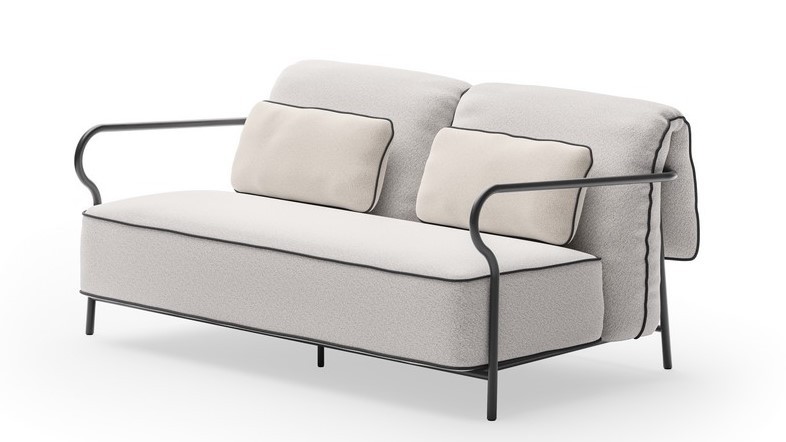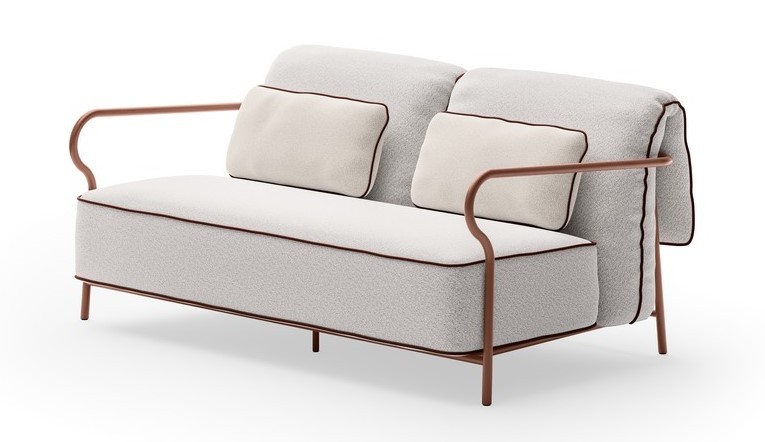 Il piping dei cuscini è in tinta al telaio.