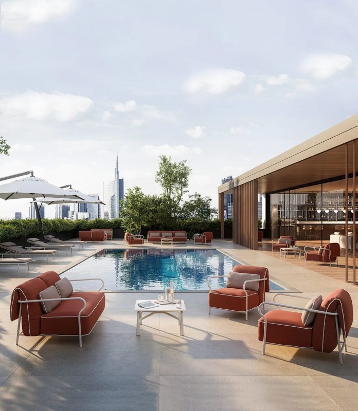 Realizzato con tubolare in alluminio nella vesione a 2 o 3 posti, verniciato a polveri nel colore Grafite, Terracotta, Salvia o Sabbia.