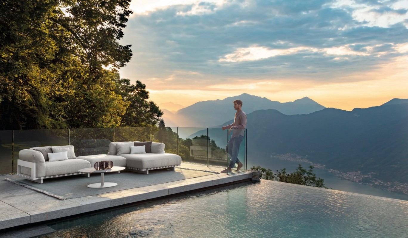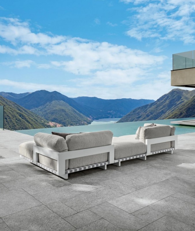 Le molteplici combinazioni che offre il divano modulare della collezione Argo Alu lo rendono il prodotto perfetto per creare il proprio living esterno. Ricerca estetica, libertà nella composizione, solida struttura in alluminio con cinghie a vista contrapposte a cuscini morbidi ed imbottiti, fanno di questo divano l’elemento d’arredo perfetto per passare momenti speciali di relax all’aria aperta.