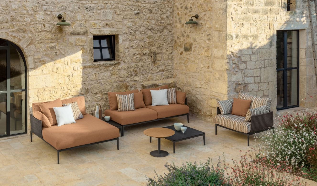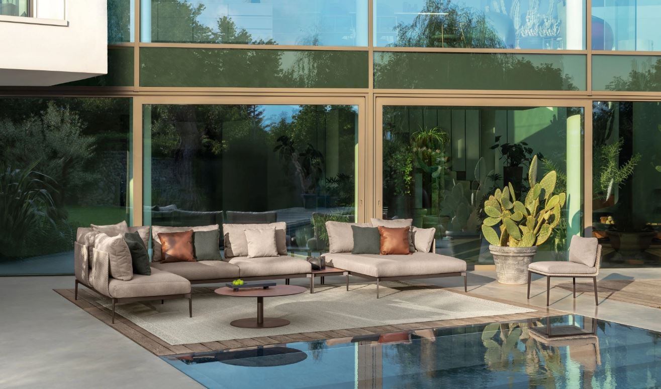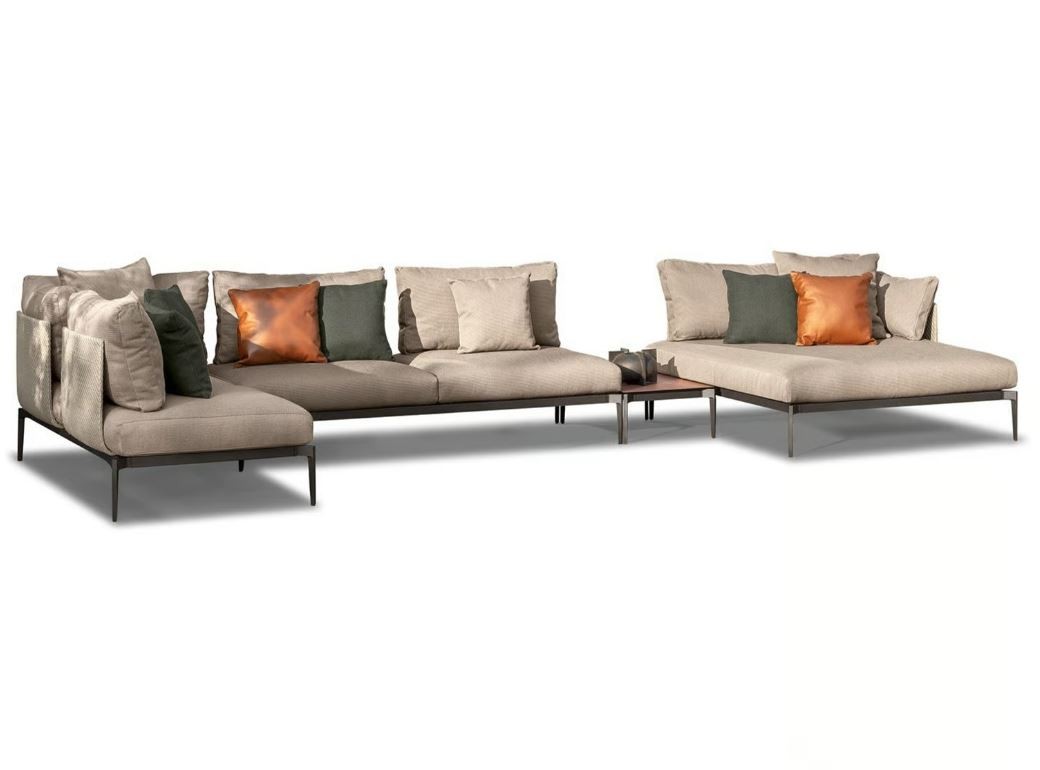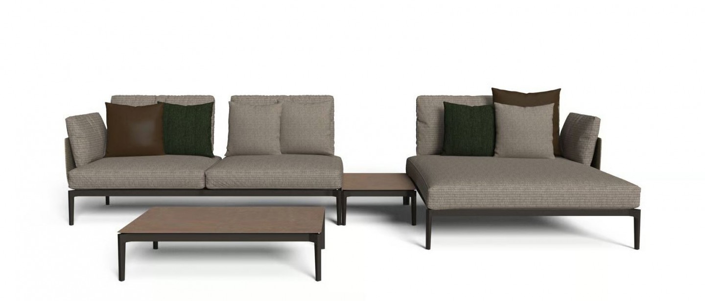 I materiali minuziosamente scelti per la struttura e la cuscinatura, rendono il divano modulare Leaf adatto a location immerse nella natura.