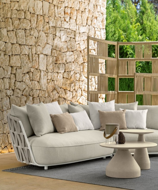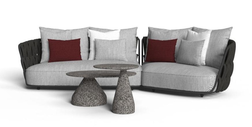 Gli schienali sono rivestiti da un intreccio di corde sintetiche imbottite Tapioca (R36), Grafite (R37) o True Navy Blue (R38).
