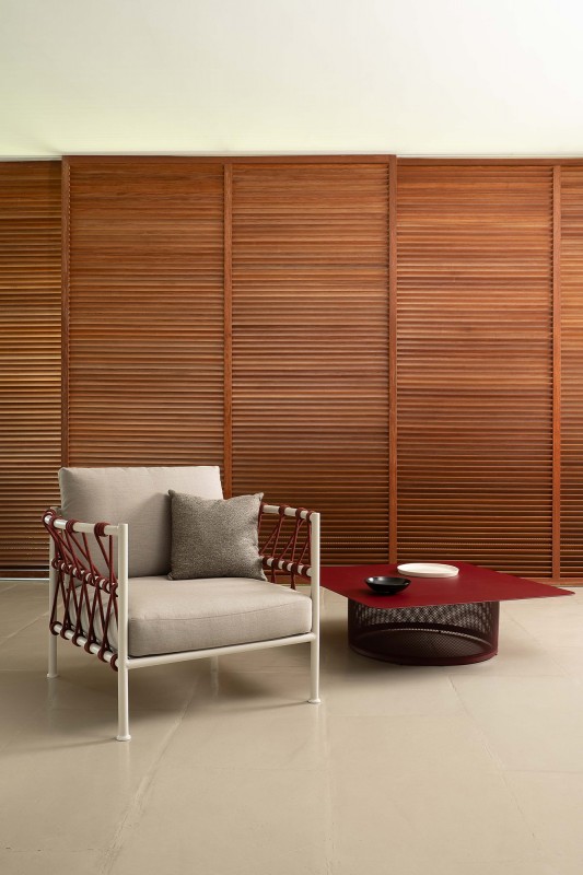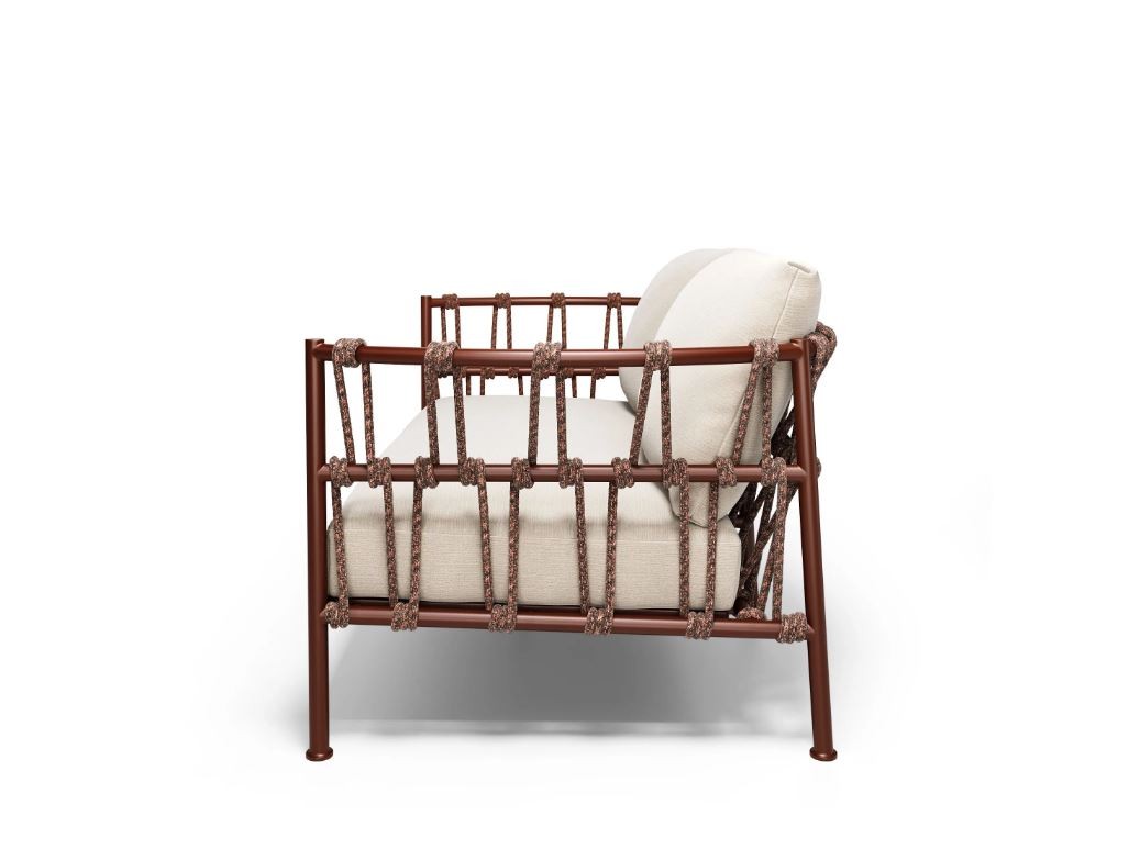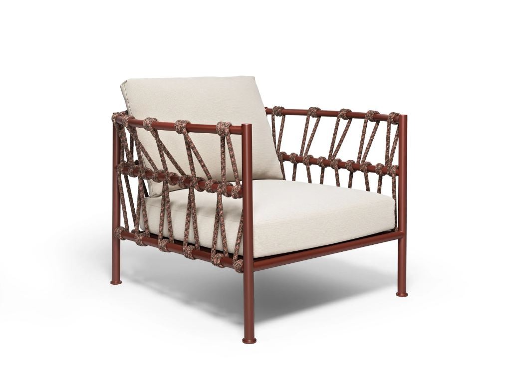 Una collezione estremamente versatile, grazie alla varietà di combinazioni colori, che spaziano dalle tonalità più sobrie a quelle più audaci, e alla sua multi-materialità: la struttura in alluminio viene avvolta da una corda intrecciata e leggera reinterpretata in chiave moderna, un elemento funzionale che arricchisce l’estetica senza nasconderne l’anima metallica.