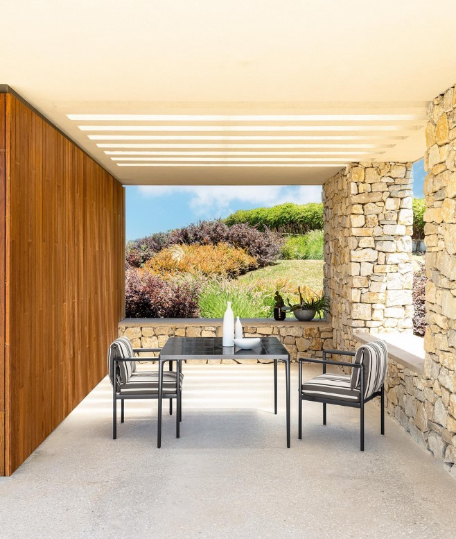 Ludovica Serafini e Roberto Palomba pensano al comfort anche in zona dining, grazie allo studio meticoloso delle geometrie, che consentono una comoda seduta arricchita da braccioli curvi e sinuosi perfettamente integrati con il design dei tavoli.