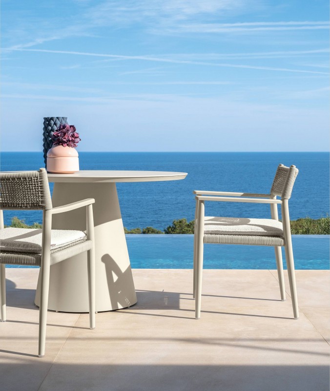 La Sedia Pranzo DOLCEVITA ALU unisce eleganza e comfort, rendendola ideale per spazi outdoor raffinati.