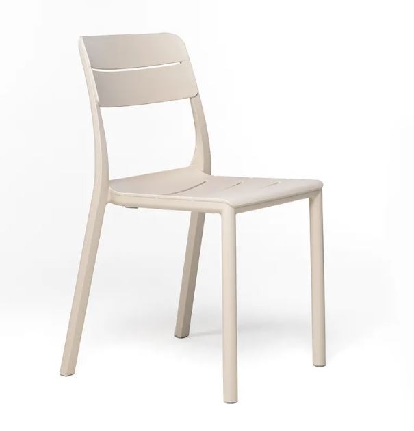 Sedia CASSIA, in polipropilene fiberglass, estremamente comoda e fresca perchè dotata di aperture tra una doga e l'altra.