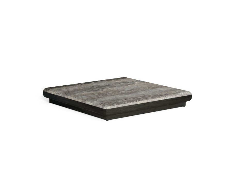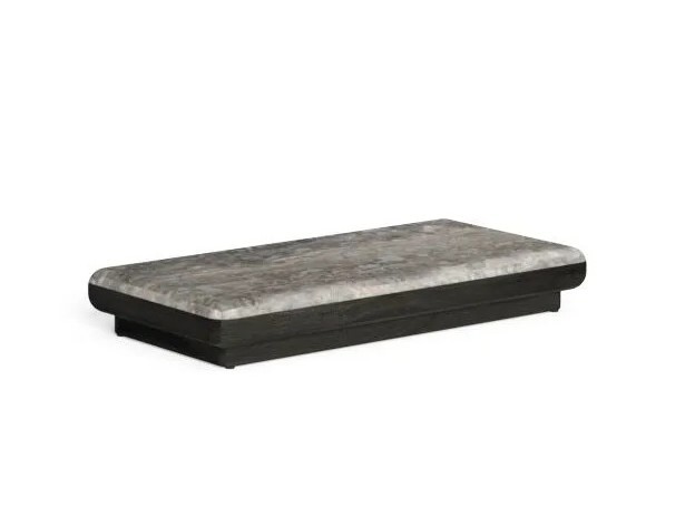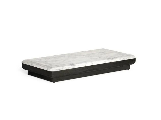 Coffee Table ITACA, caratterizzato dalla base in Accoya, in versione naturale o palissandro completato, in tutta la sua sinuosità, da preziosi piani in marmo, classico e mai banale bianco di Carrara, o il più peculiare Travertino Titanio, dai toni fumosi che si muovono liberi tra il grigio tortora e marrone più intenso.
