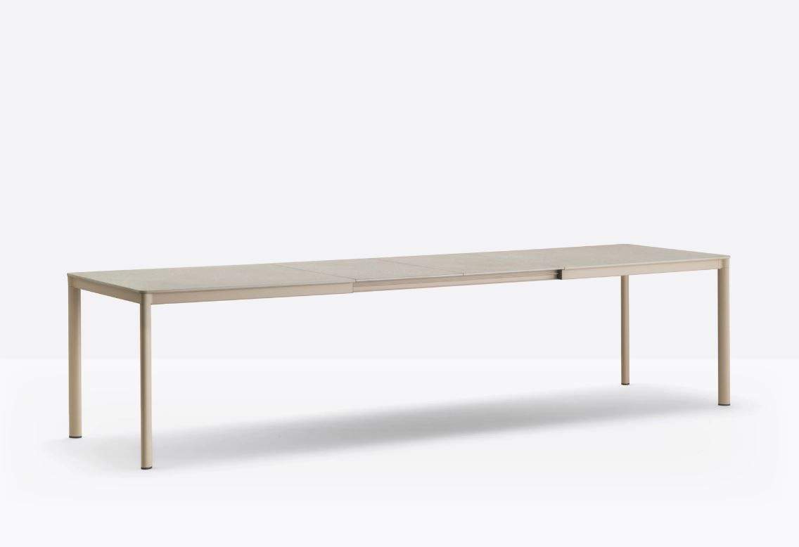 Tavolo ALU Allungabile, pensato per coniugare estetica contemporanea e funzionalità, con un design versatile adatto a diversi contesti; si caratterizza per una struttura realizzata in estruso di alluminio.