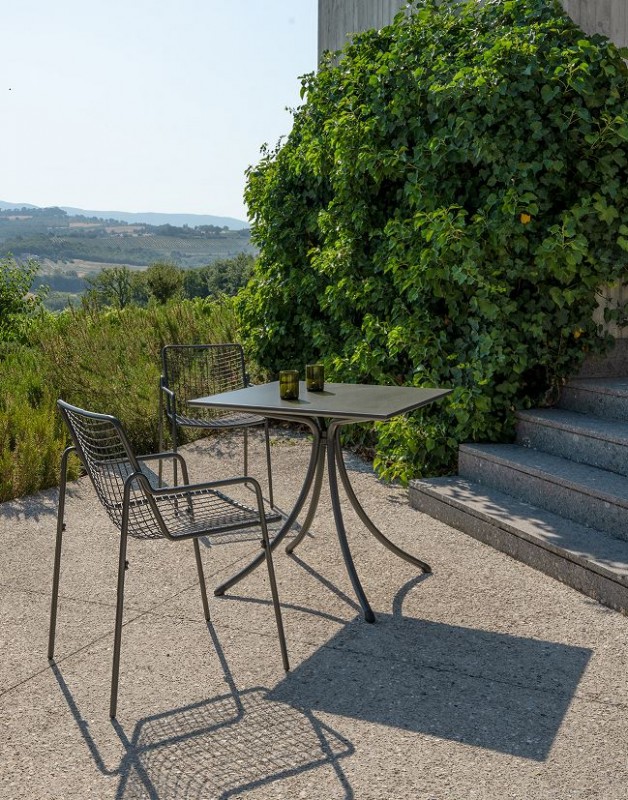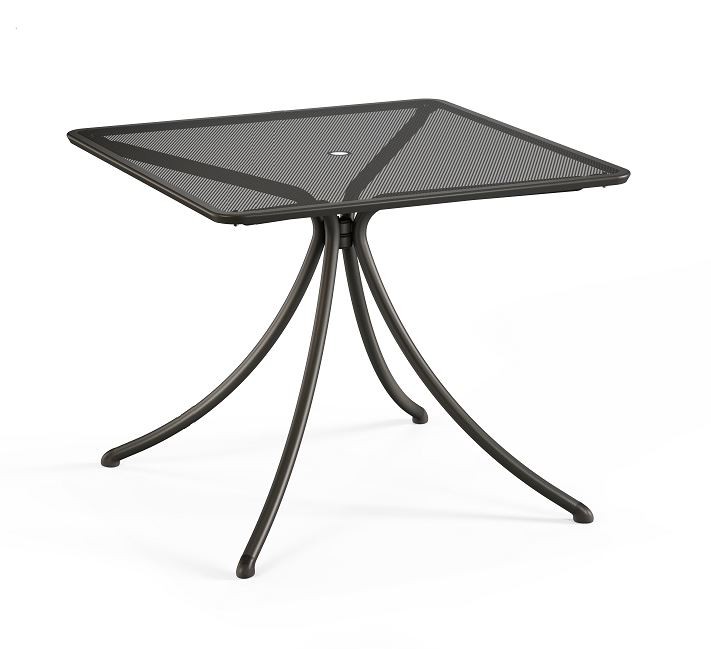 Tavolo COMBO quadrato in acciaio zincato e verniciato con il piano in lamiera stirata o in lamiera piena.