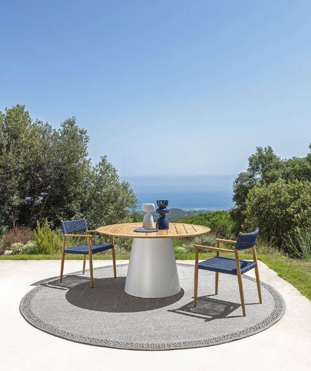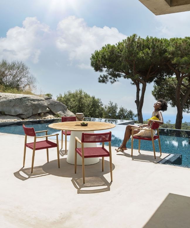TAVOLO DOLCEVITA è una dichiarazione di leggerezza e stile che colora il living esterno con una ventata di freschezza.