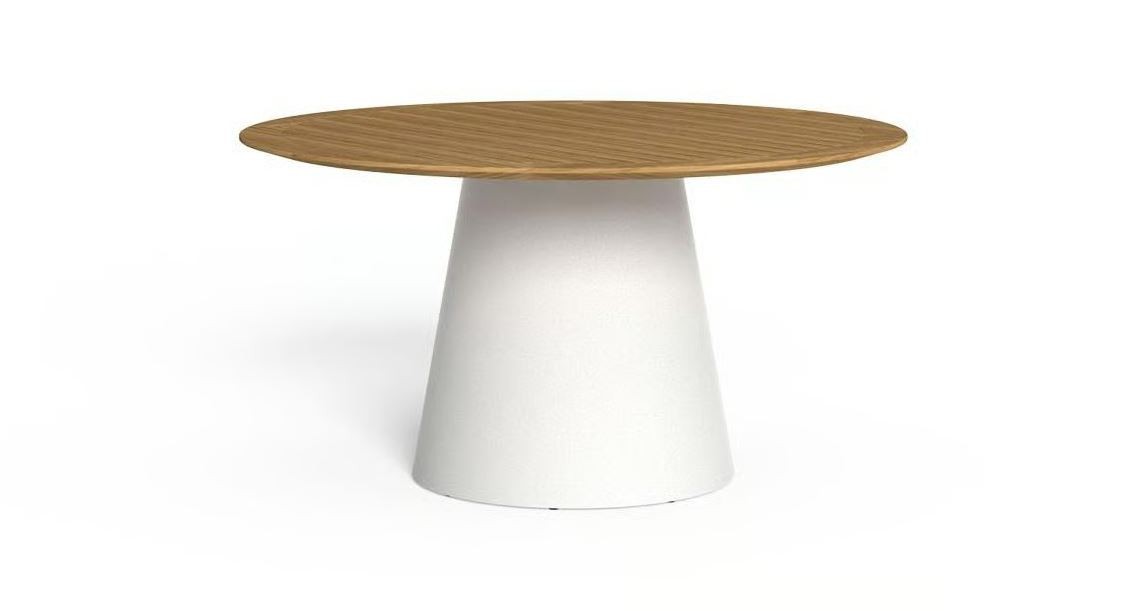 Ispirato alle sere d’estate, questo elemento d’arredo si distingue per il suo design vivace, che combina il piano in teak accuratamente rifinito con il basamento in alluminio colorato.