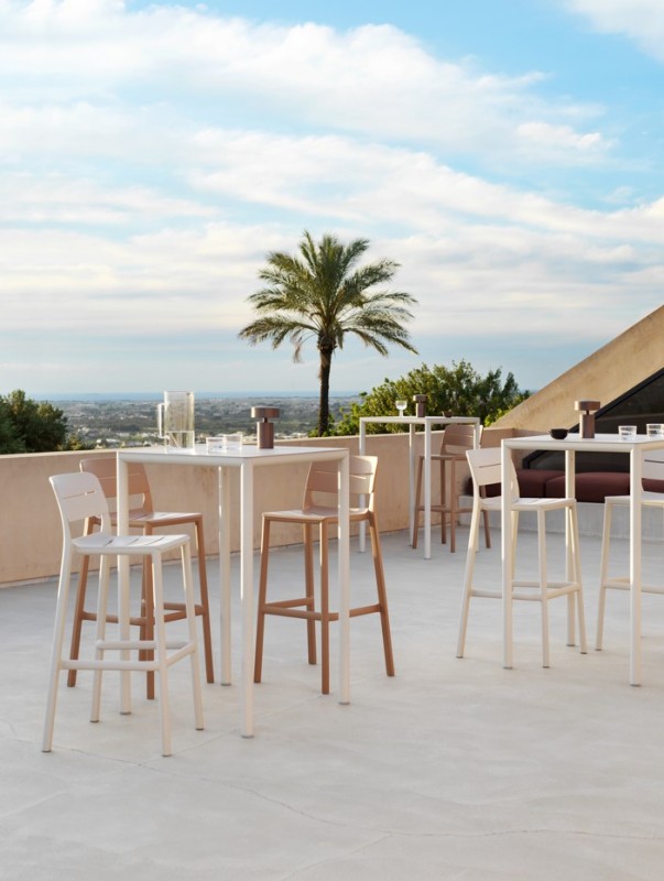 Tavolo PIAVE Alto, con struttura in alluminio e piano in laminato HPL.
